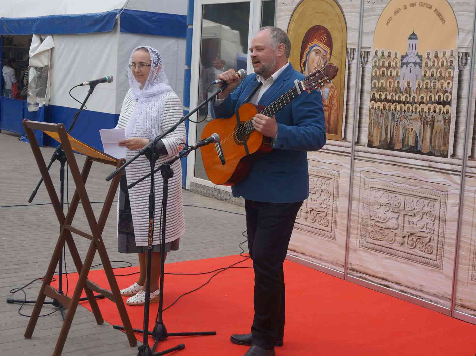 Для всех, кто посетил открытие выставки, звучала концертная программа «Не отыми покрова» от гостей из Минска Евгения и Елены Пименовых.