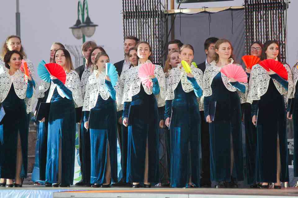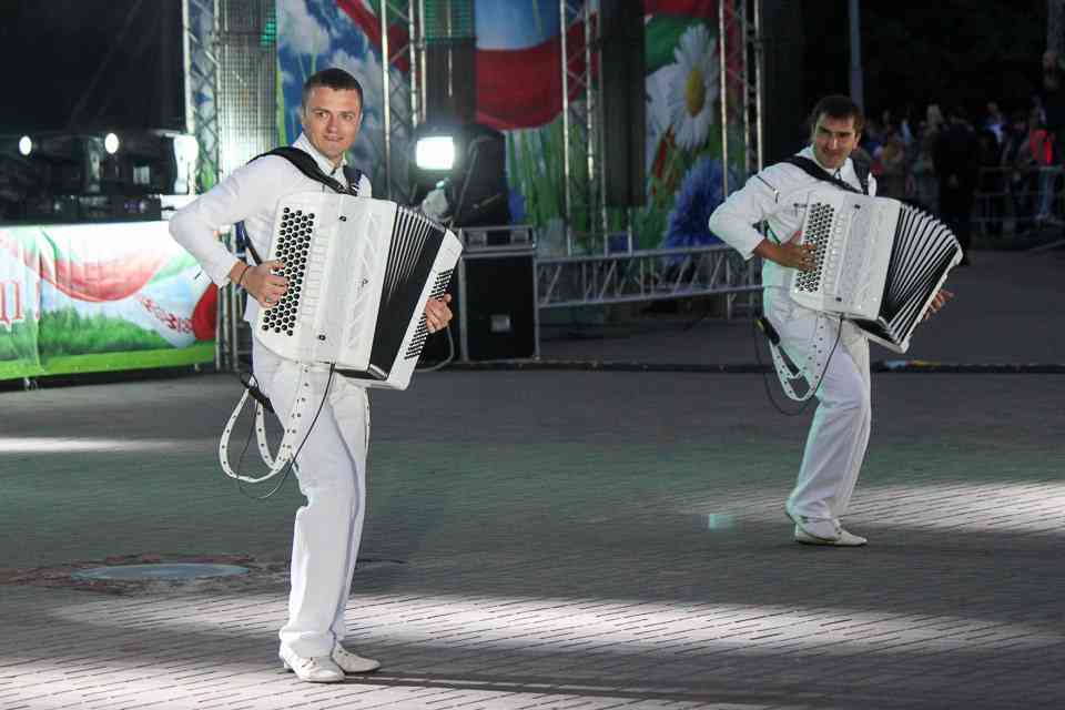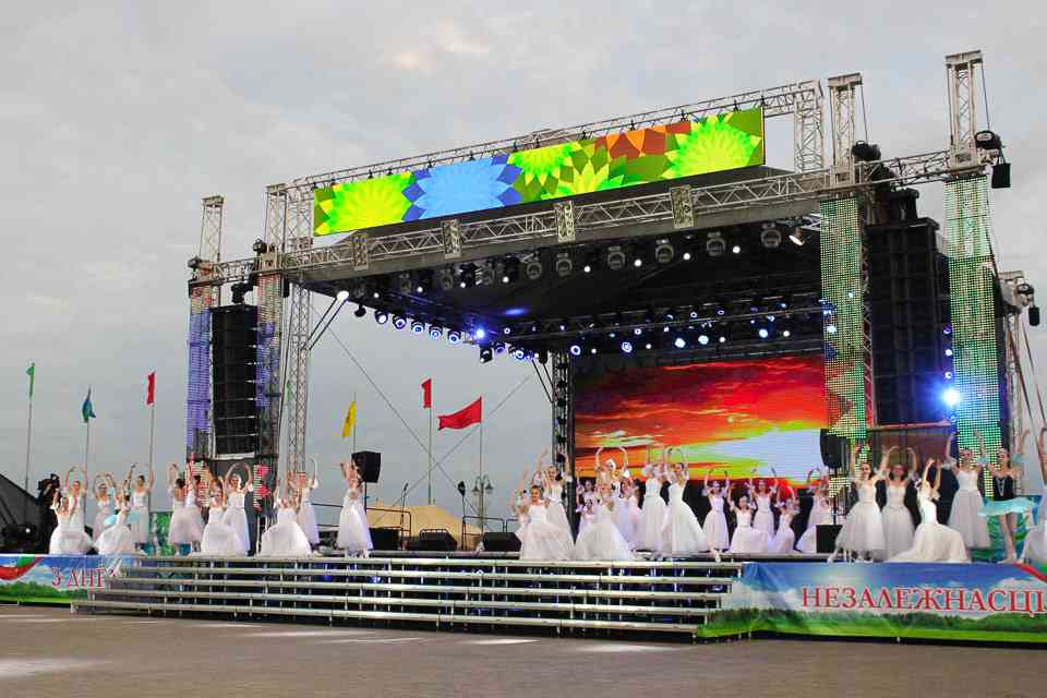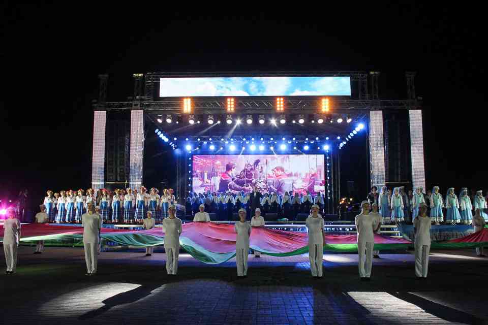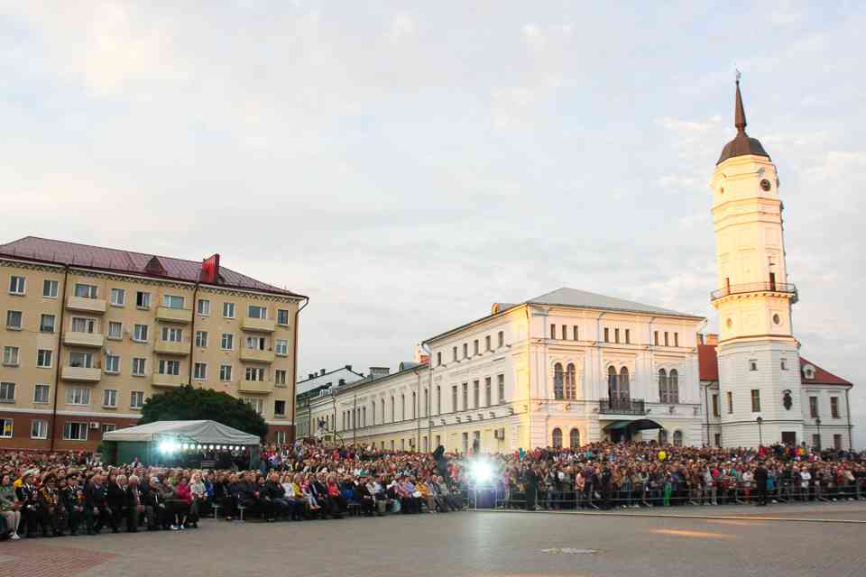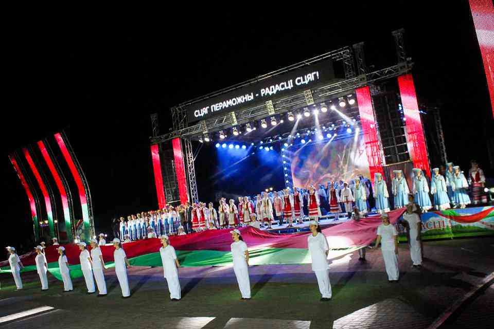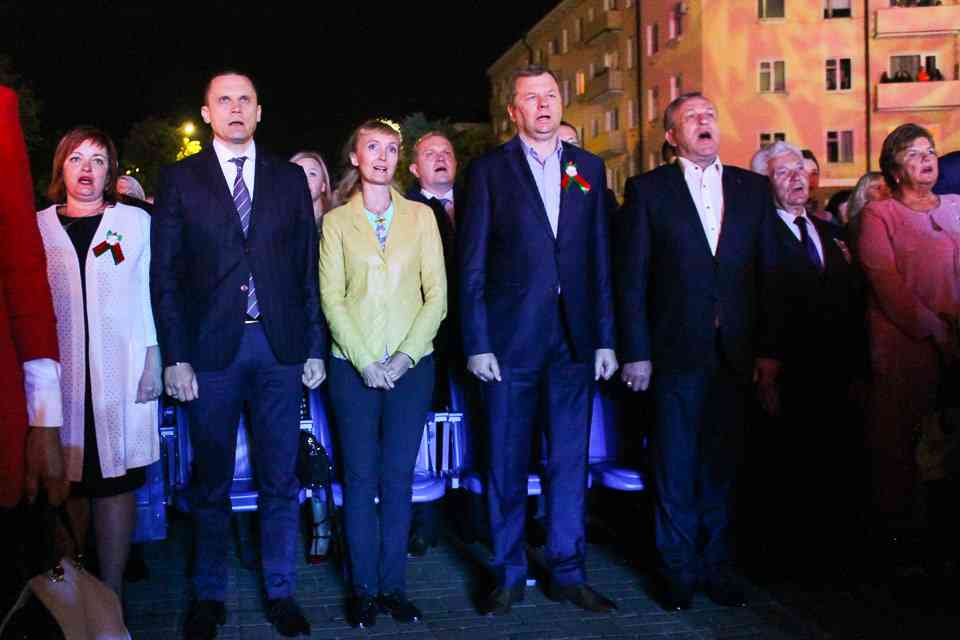 В Могилеве главной концертной площадкой стала площадь Славы. Десятки артистов и творческих коллективов дарили зрителям свои музыкальные подарки. «Гвоздем программы» стали выступления российских артистов Алексея Воробьева и Олега Газманова. Ну а кульминацией — исполнение всем Могилевом в унисон с Беларусью гимна нашей страны. Акцию «Споем гимн вместе» уже давно назвали душой праздника. А как иначе. Сотни тысяч людей по всей Беларуси собираются на главных площадках городов, чтобы пропеть заветные слова.