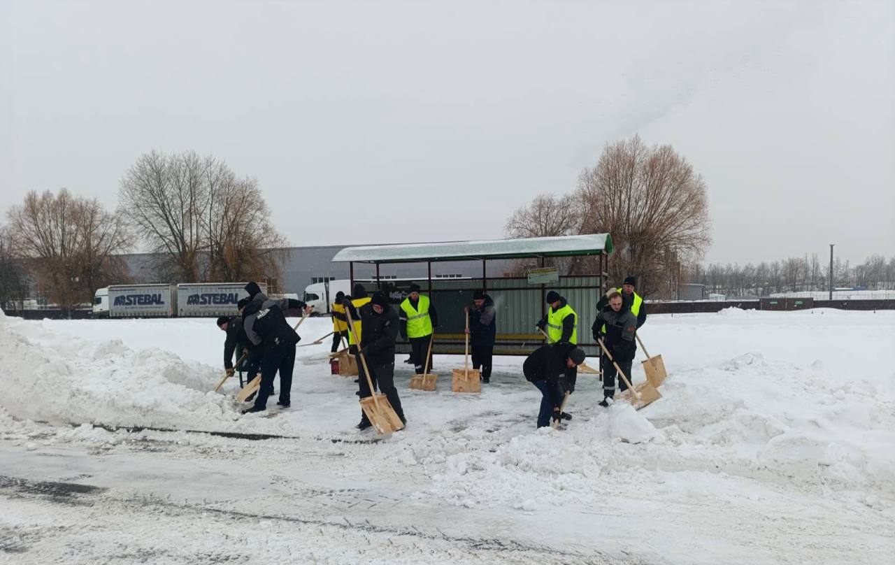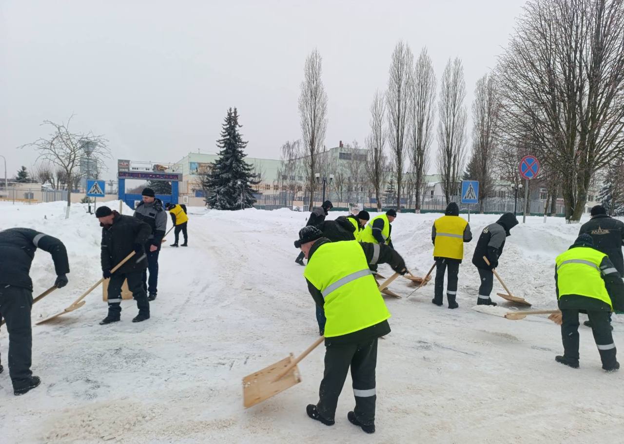 Предприятия областного центра сегодня наводят порядок на закрепленных участках. «Могилёвтрансмаш» работает на закреплённой территории и помогает убрать снег с остановочных пунктов.