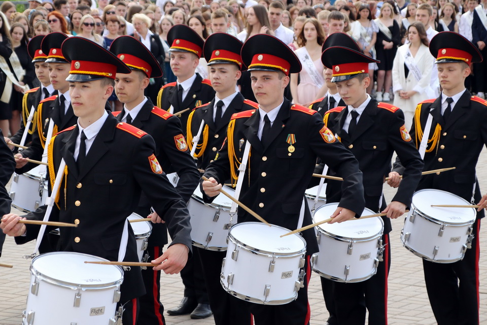 На площади Славы собрались учащиеся городских школ, кадеты, воспитанники детских музыкальных студий и творческие коллективы областного центра, а также учителя и родители выпускников.