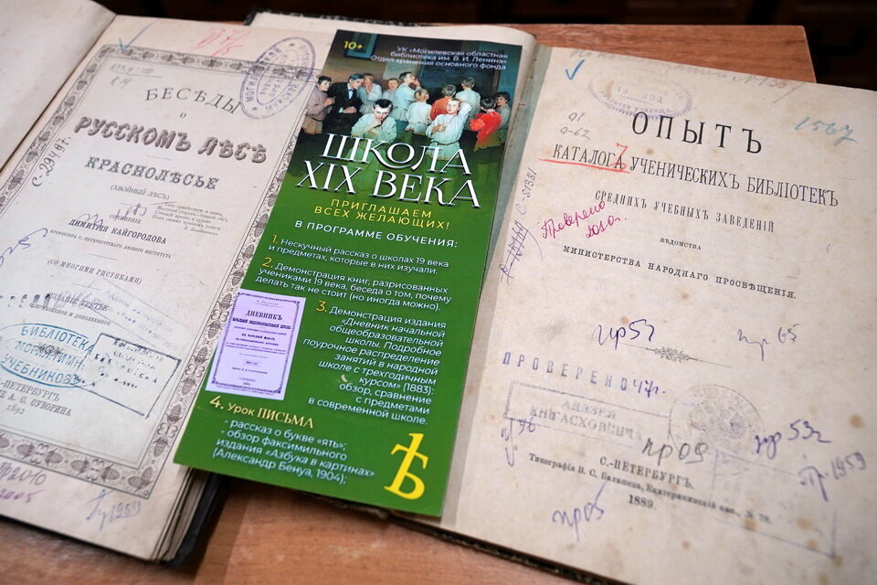 Пять тысяч редчайших изданий — «жемчужины» отдела хранения — стоят в специальной комнате. Первый номер журнала «Современник» 1837 года, который вышел после смерти Александра Пушкина, энциклопедический словарь Брокгауза и Эфрона, энциклопедический словарь братьев Гранат 1910 года, «Жизнь животных» Брэма и другие раритеты… На многих старинных книгах стоит печать Могилевской мужской гимназии.