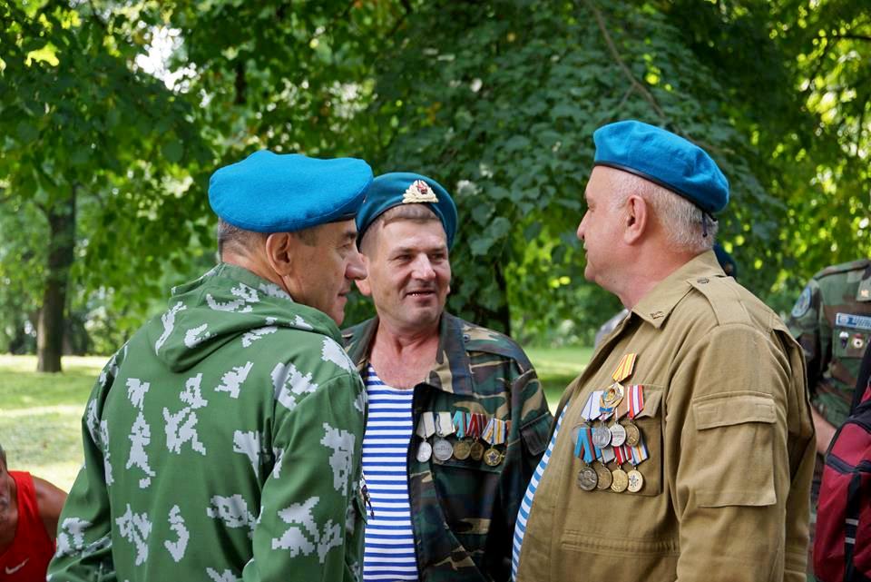 Еще задолго до начала мероприятия в парке Горького начали собираться люди в тельняшках и голубых беретах. Приходили семьями. Дружеские объятия и рукопожатия — делились новостями, вспоминали былое.