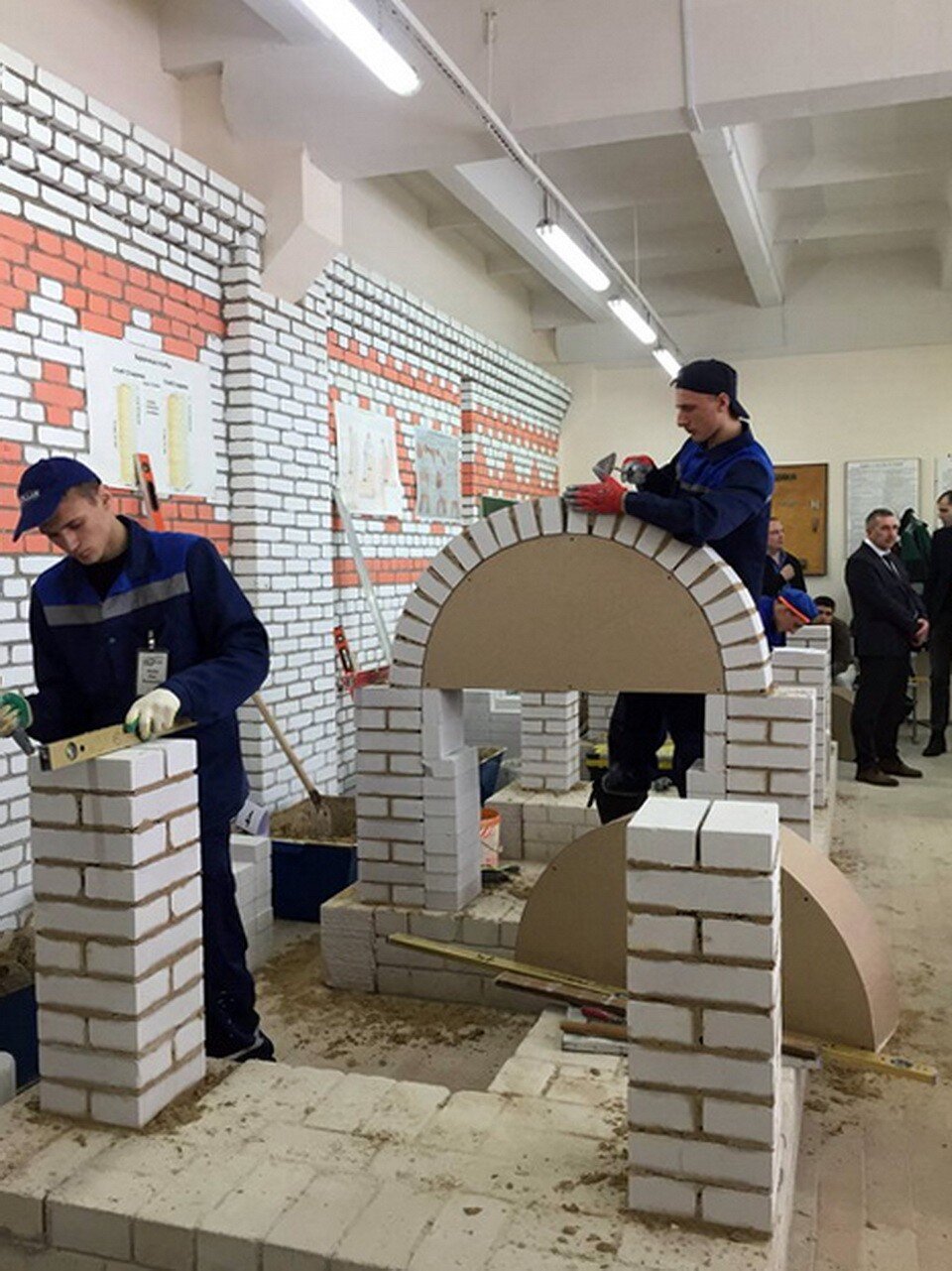 Конкурсантам необходимо было сложить два столба и арку из кирпича. По сложности – это задание для каменщиков пятого разряда. На его выполнение мастерам было отведено 3 часа, подмастерьям – 4. Жюри оценивало качество и скорость.