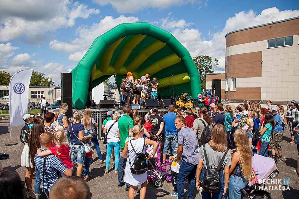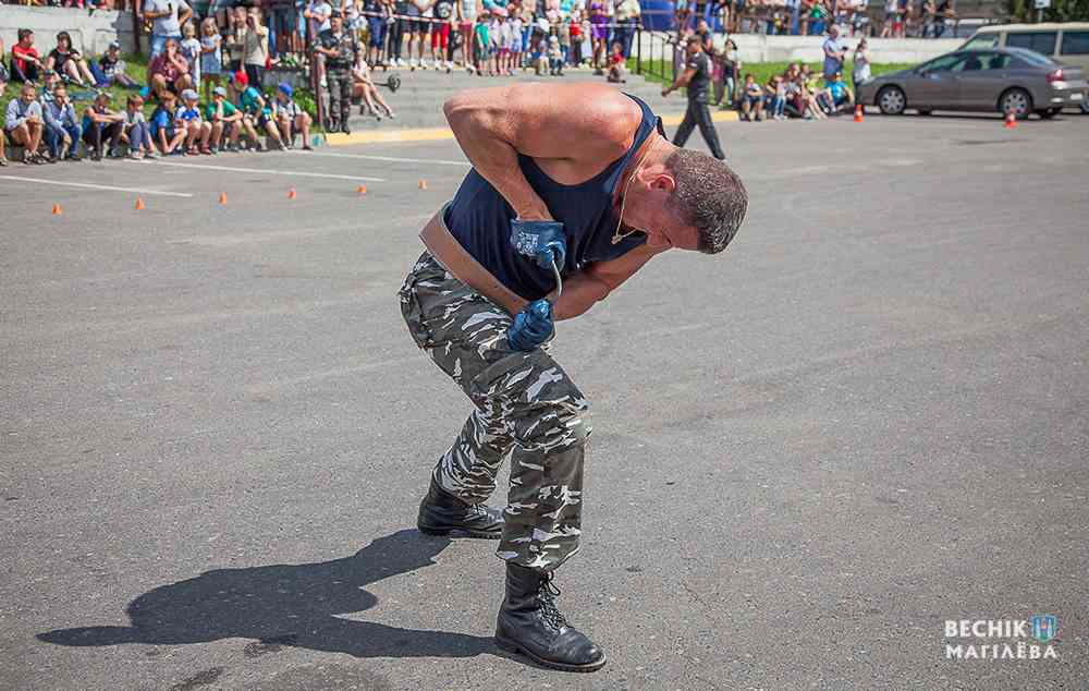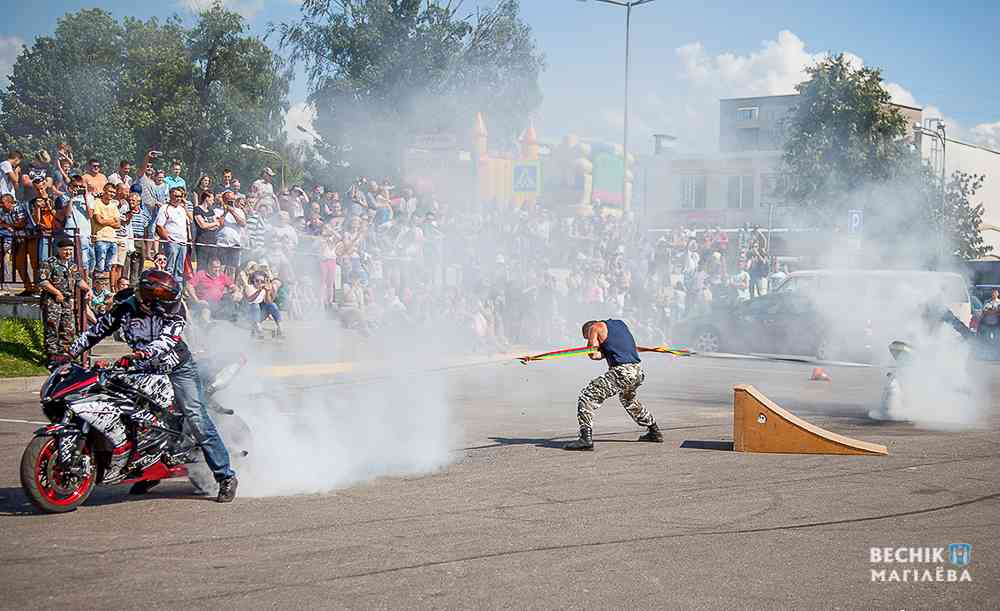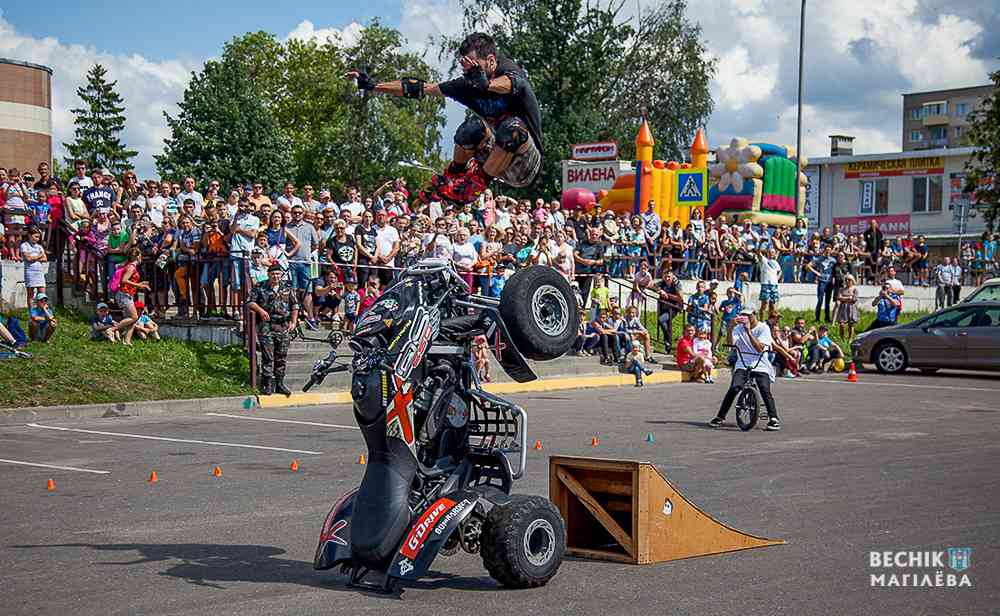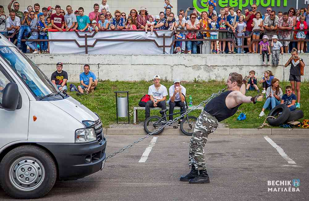 Для гостей приготовили насыщенную программу и множество активностей от компаний-партнеров. Маленькие могилевчане участвовали в спортивных и творческих конкурсах вместе с аниматорами, были «учениками» арт-школы и веселились как могли. Никого не оставило равнодушным выступление могилевских силачей — братьев Казаковых, которые в легкую сгибали и забивали гвозди голыми руками и скручивали стальную арматуру. А один из них даже тянул зубами настоящий микроавтобус. Участвовали в празднике роллеры, спасатели и каскадеры, которые выполняли опасные трюки на квадроциклах и мотоциклах.
