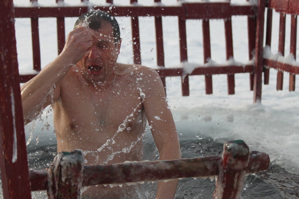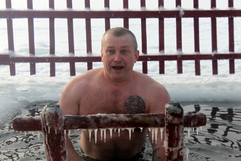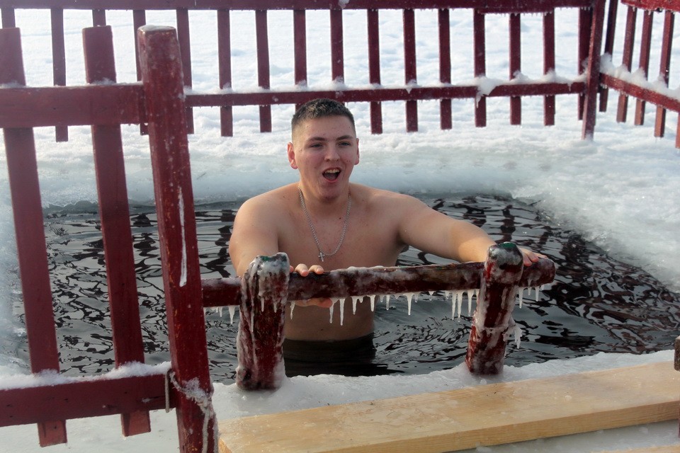 «Ох, хорошо! Тепло!» – восклицает могилевчанин Михаил, вынырнув из купели. И с ним не поспоришь: на термометре ниже 16 градусов, а вода, как говорят спасатели, 4! «Уже несколько лет прихожу сюда, – рассказывает он, не торопясь утепляться. – Однажды попробовал, понравилось – почему бы не окунаться. Говорят, здоровее буду. Дай Бог».