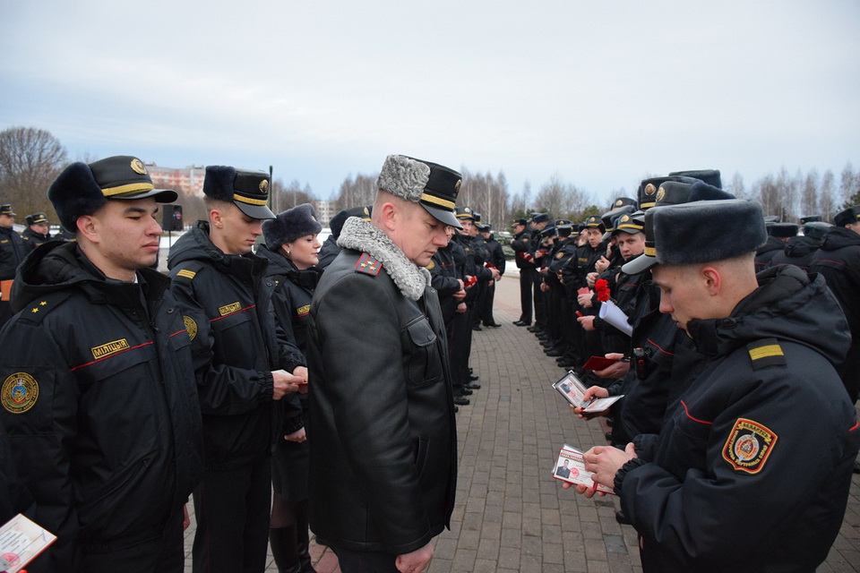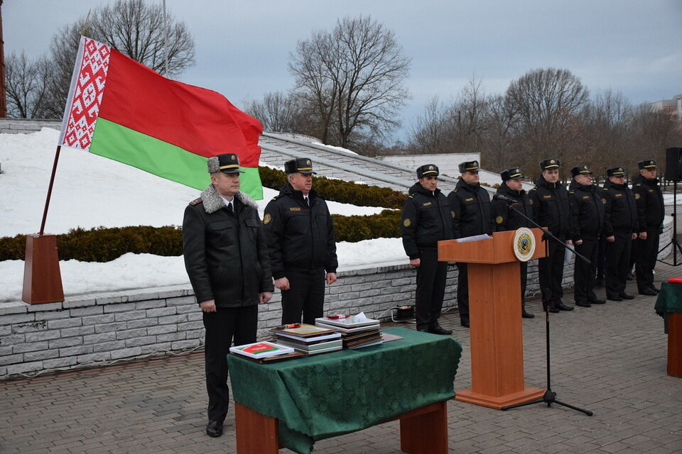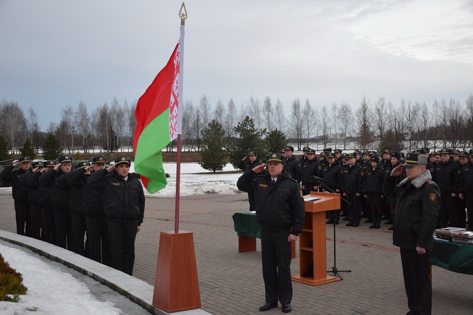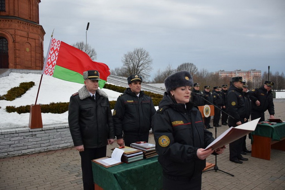 Начальник управления охраны полковник милиции Игорь Драчев поздравил участников мероприятия с праздником и провел торжественный инструктаж сотрудников, заступающих на службу. Начальник управления вручил табельное оружие молодым сотрудникам. Также на Буйничском поле прошло торжественное принятие присяги и вручение очередных специальных званий.