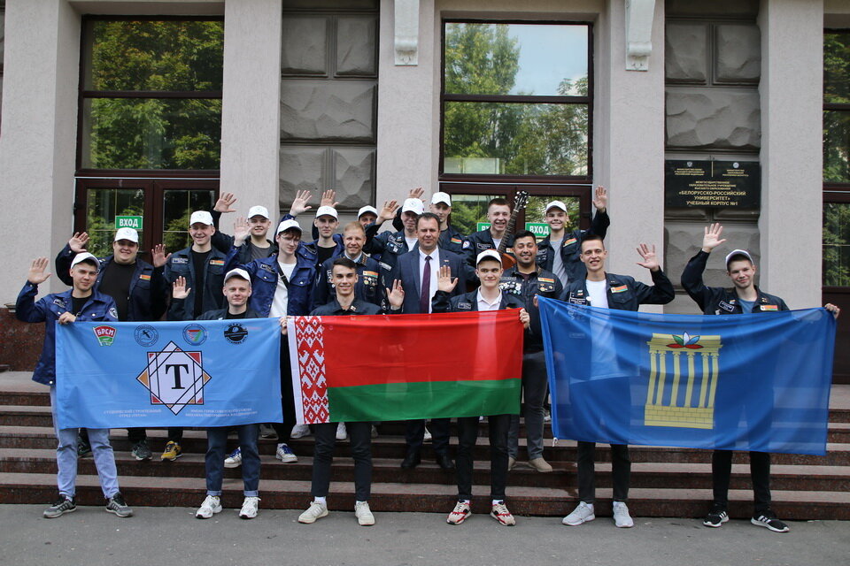Сегодня от учебного корпуса Белорусско-Российского университета торжественно отправили студенческий строительный отряд «Титан», который будет трудиться на возведении одной из самых больших в России школ.
