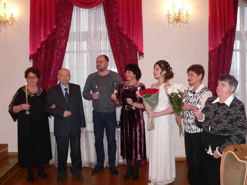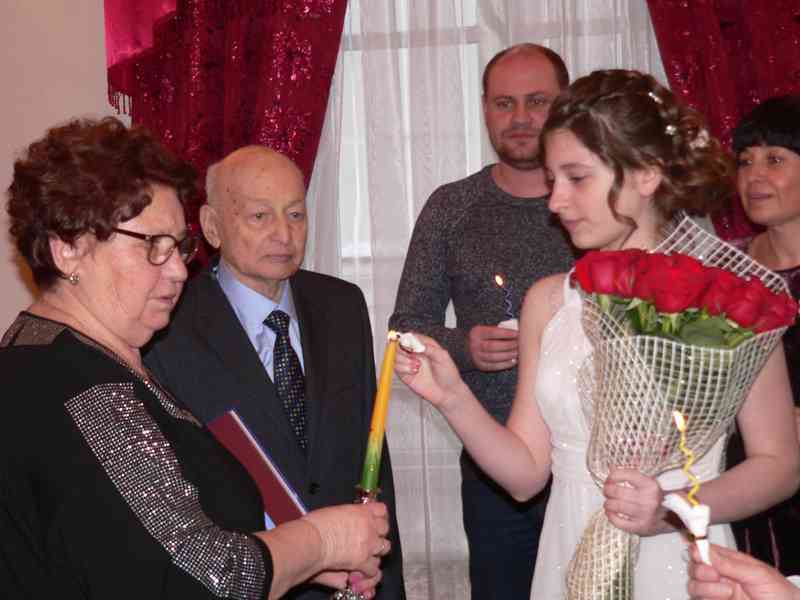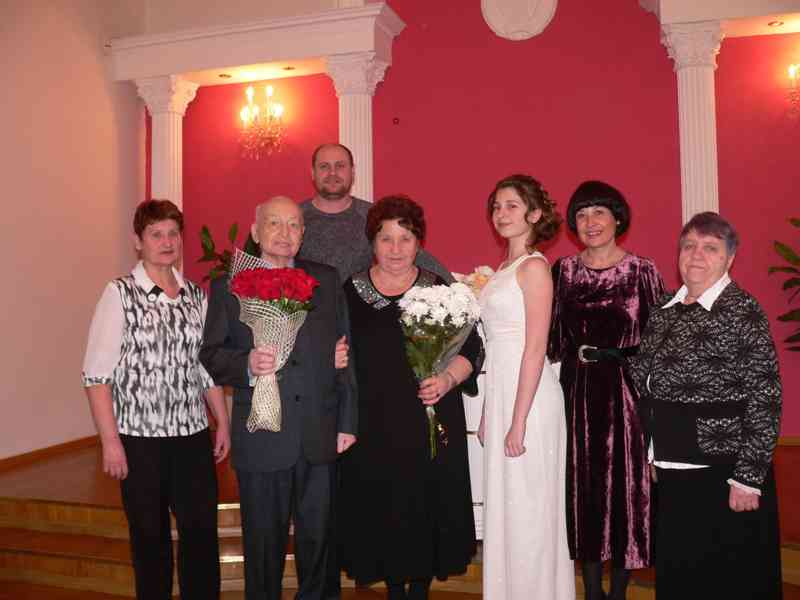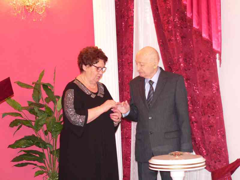 В бриллиантовом зале ЗАГСа прошла торжественная регистрация пары, их имена записаны в почетной книге юбиляров. Как шесть десятков лет назад Леонид Стефанович надел обручальное кольцо любимой супруге Алле Алексеевне. Свадебный танец и зажженные свечи семейного очага, все присутствовало в этот памятный день. Родные и близкие поздравляли семейную пару с внушительным стажем.