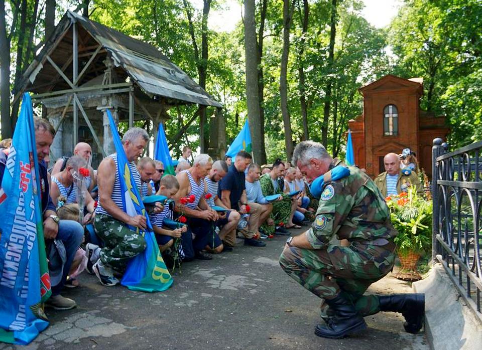 Открыло их собрание на площади Славы. Затем колонна «крылатой пехоты» прошествовала к могиле Героя Советского Союза Андрея Мельникова, где состоялся митинг-реквием. На набережной Днепра у памятника воинам-интернационалистам «голубые береты» возложили цветы.