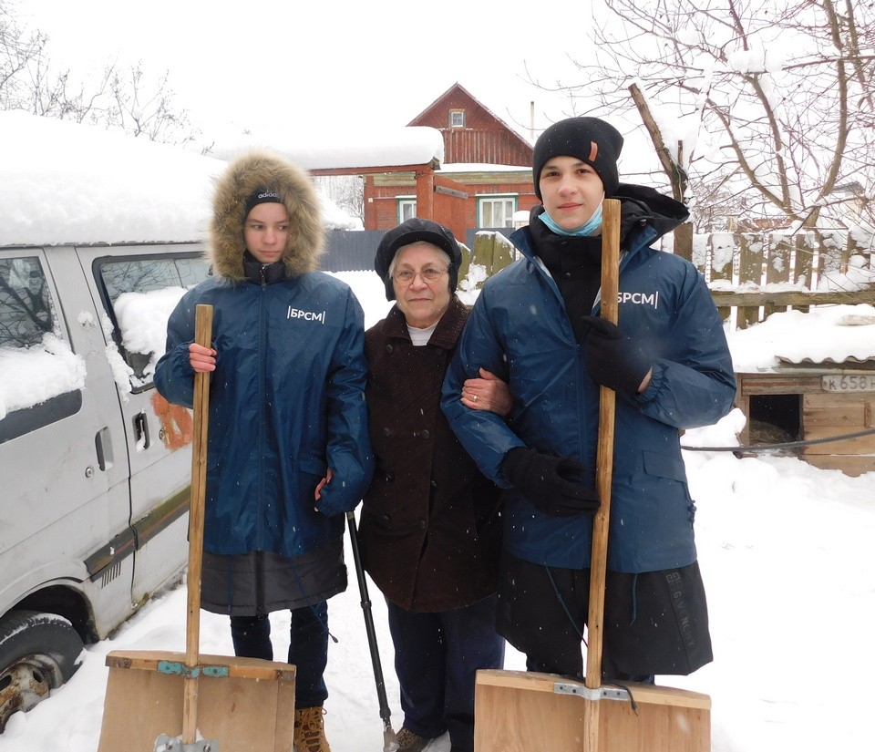 В рамках республиканского челленджа «Уберем снег вместе» старшеклассники СШ №8 расчистили снег на дворовой территории пенсионерки Эммы Мирошниченко, живущей в частном доме по ул. Короленко. По словам педагога-организатора, руководителя первичной организации БРСМ школы Екатерины Семаковой, волонтеры БРСМ «Доброе сердце» постоянно оказывают помощь одиноким пожилым людям, инвалидам, ветеранам войны.