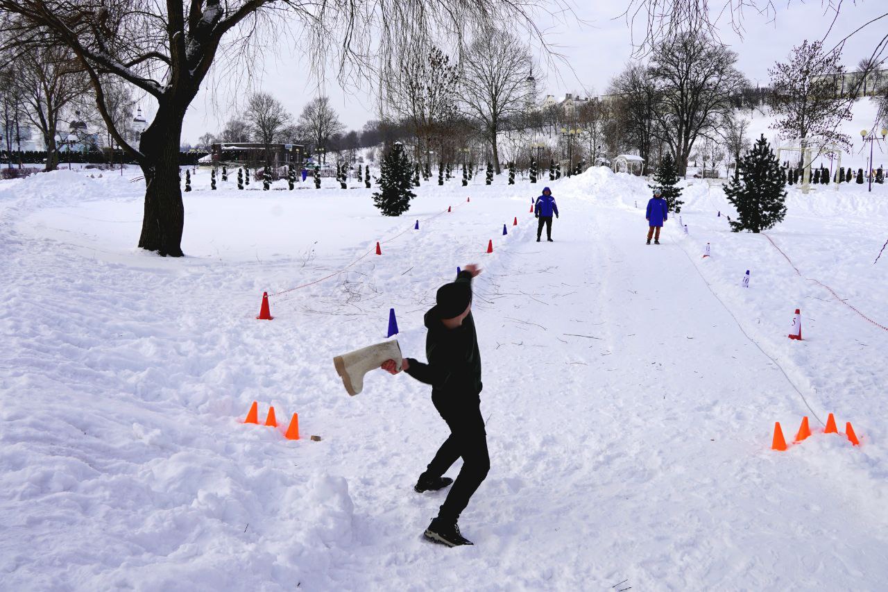 Более 300 человек от 2 до 60+ лет вышли на снежный «метательный полигон». Главный судья — заслуженный мастер спорта Оксана Менькова — честно замеряла все броски.