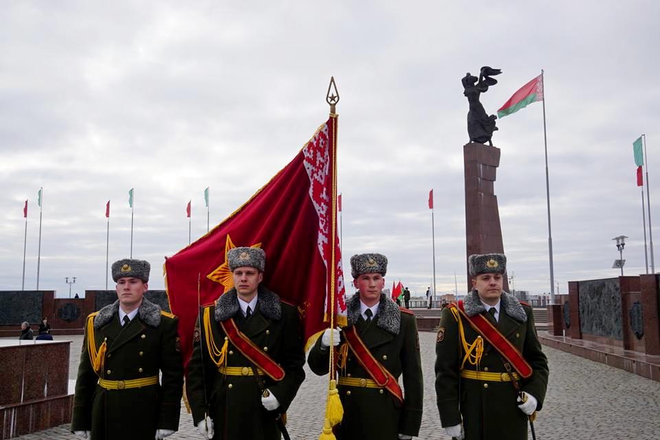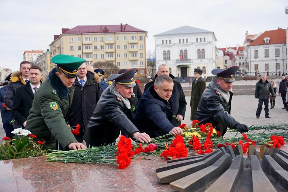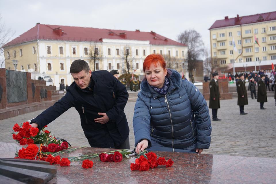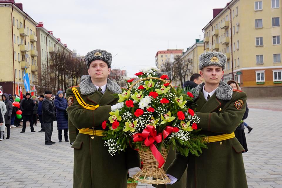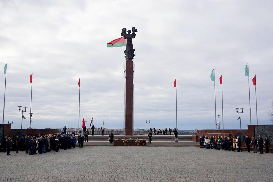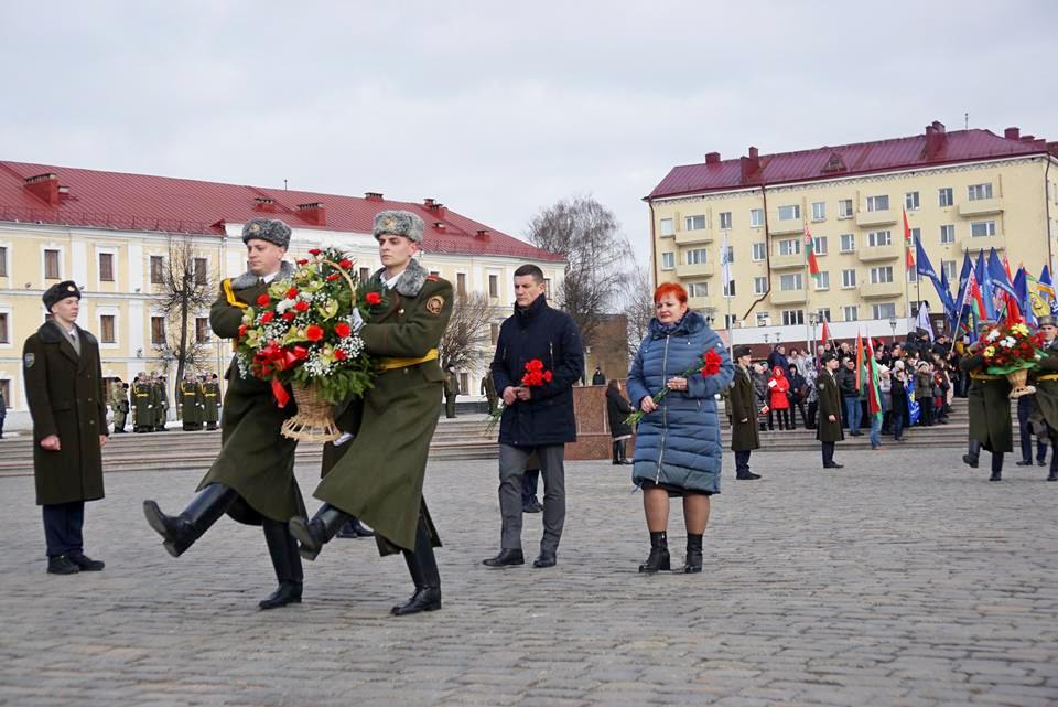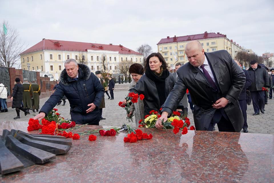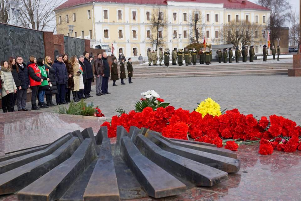 В Могилеве в День защитников Отечества и Вооруженных Сил Республики Беларусь на площади Славы прошла торжественная церемония возложения цветов и венков.