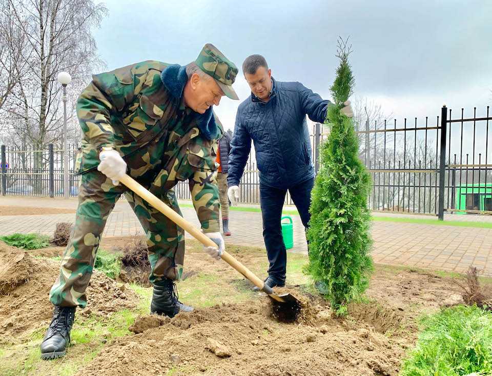 В Могилеве во время субботника благоустроили и озеленили территорию возле обновленного роддома