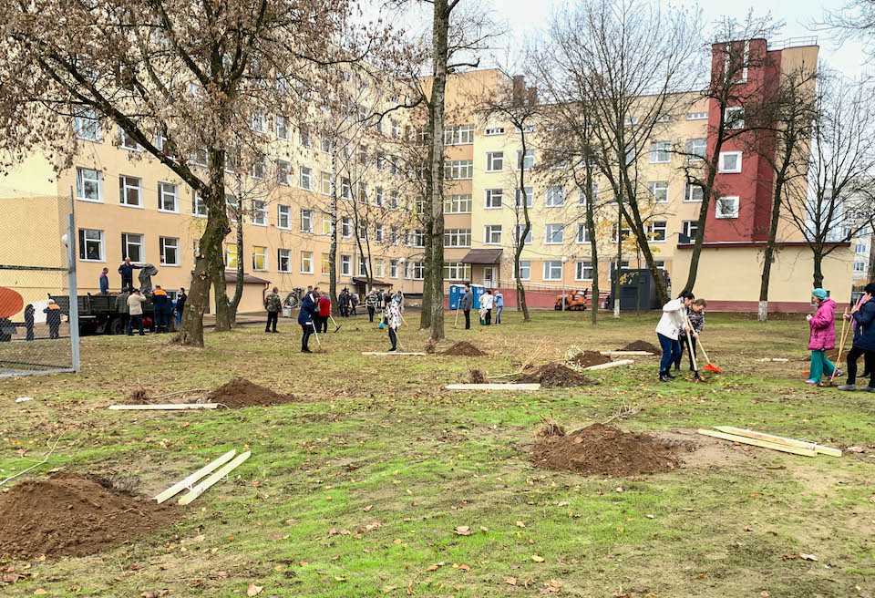 В Могилеве во время субботника, прошедшего 26 октября, благоустроили и озеленили территорию возле обновленного роддома, открытие которого ожидается в начале ноября.
