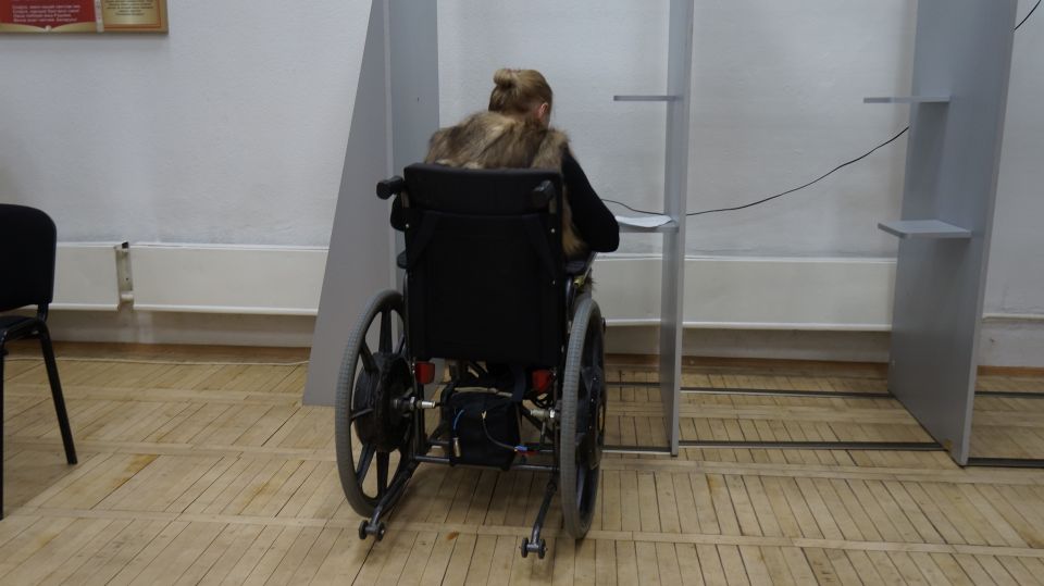 Люди разных возрастов приходят на избирательный участок, чтобы сделать свой выбор. Среди проголосовавших, молодая пара — Сергей Можаев и Марина Рабчикова.