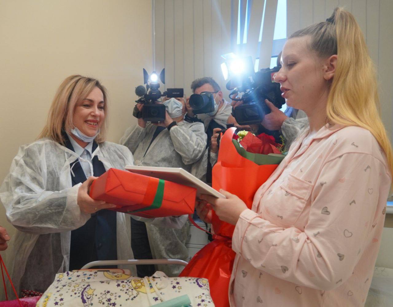 Новорожденную назвали Анной, и вот еще одно удивительное совпадение — она третий ребенок в семье. Ориентир на многодетность поддерживает и молодая мама Виолетта Верховцова. Ей передан подарок от Главы государства.