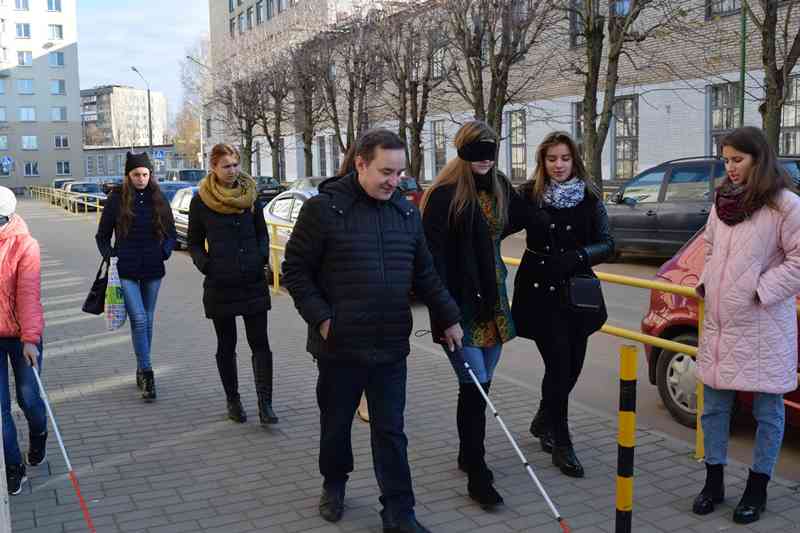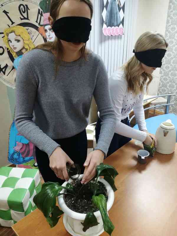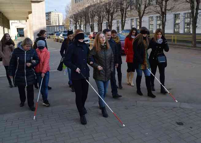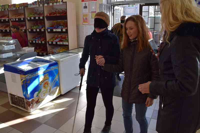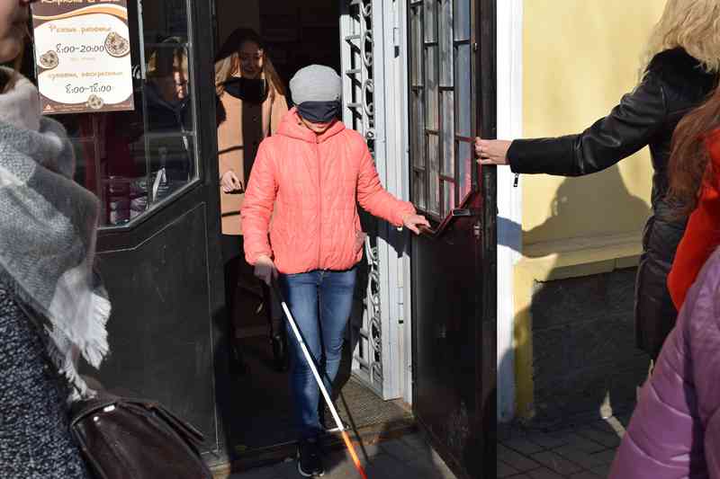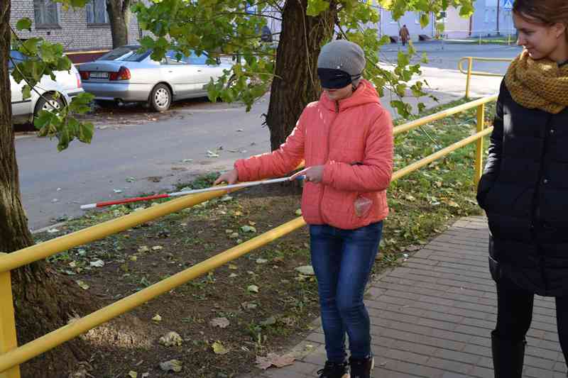 Были организованы тематические зоны: «Закрой глаза и посмотри», «Экскурсия в темноте: прожить час из жизни незрячего», «Жилая комната», «Городская улица», «Библиотека».