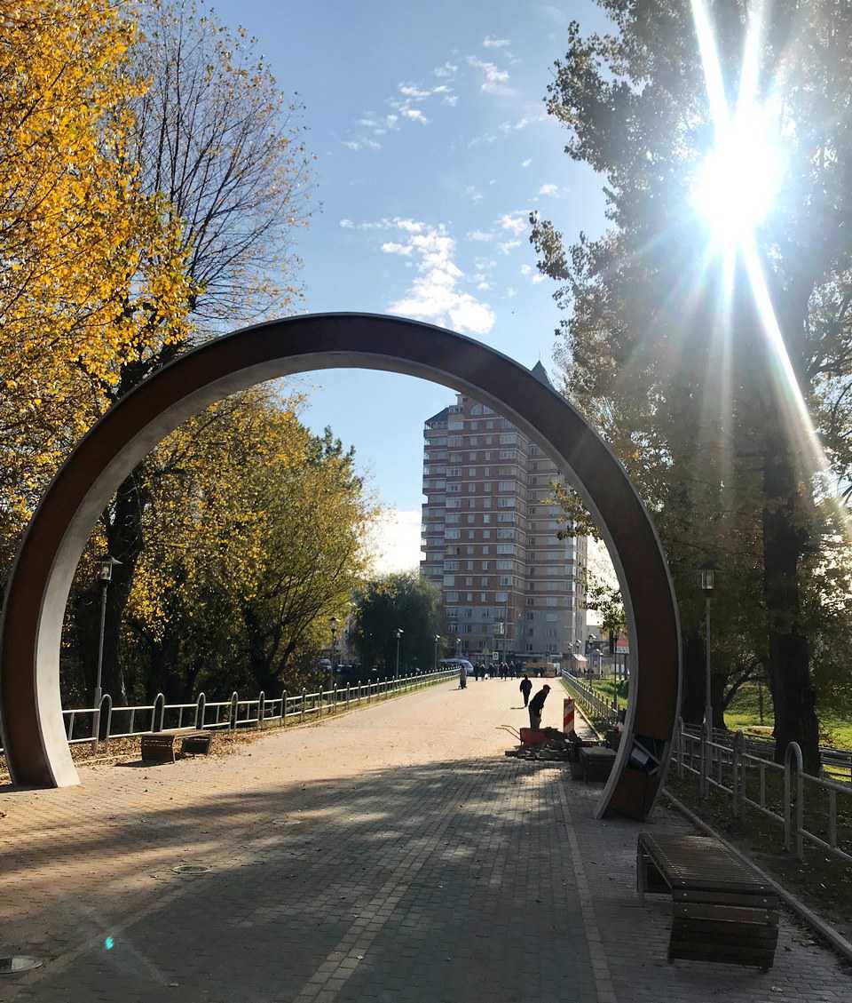 На объекте еще ведутся работы, но жители микрорайона уже успели оценить новый объект: мамочки гуляют с малышами в парке, а молодежь делает селфи на фоне вечерней, сияющей арочной галереи.