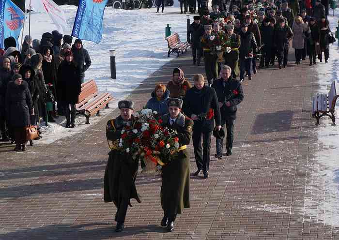 Сегодня в честь Дня защитников Отечества и 100-летия Вооруженных сил Республики Беларусь руководители местных органов власти, делегации представителей трудовых коллективов, ветеранов войны и Вооруженных сил, общественности возложили цветы и венки на мемориальном комплексе «Буйничское поле». По традиции они почтили минутой молчания тех, кто погиб, защищая в разные годы Отчизну.