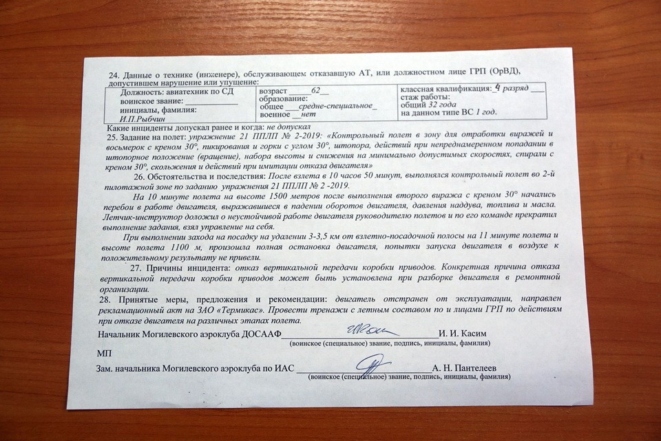 Начальник Могилевского аэроклуба ДОСААФ имени А.М. Кулагина Иван Касим говорит, что Денис мог не рисковать и вместе с курсантом выпрыгнуть с парашютом. Но летчики покидают самолет в исключительных случаях, ведь они с крылатой машиной одно целое. И объясняет, насколько серьезной была ситуация.