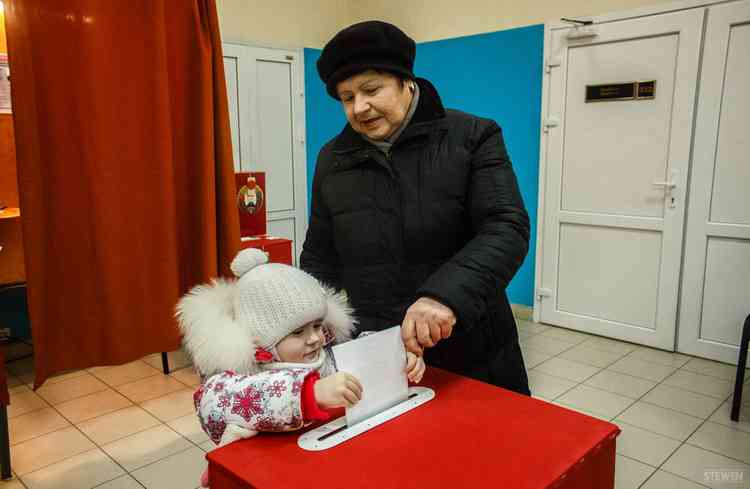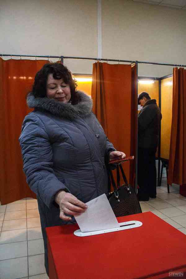 «Ой, а мы боялись опоздать – думали, что вы до девятнадцати работаете», — радуется женщина, которая пришла с мужем. Они заполняют бюллетени в разных кабинках: это предусмотрено правилами.