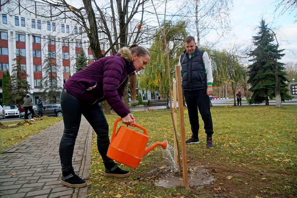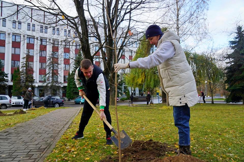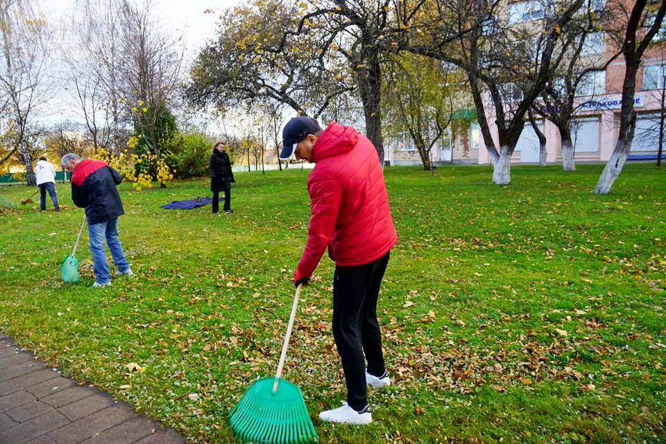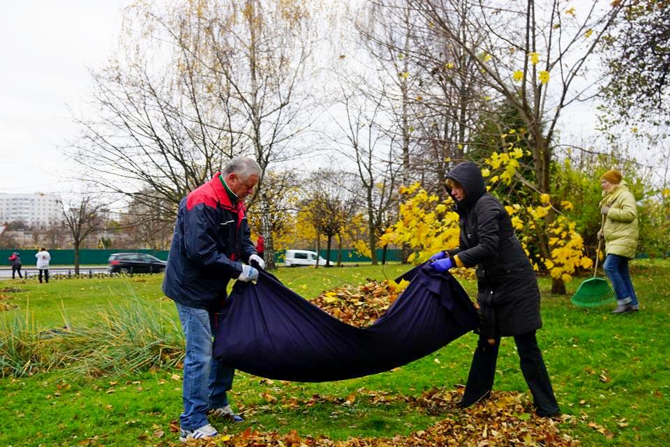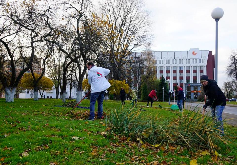Часть из них наводила порядок на территории, прилегающей к зданию администрации, убирая осеннюю листву и мусор. К этому почину присоединились работники главного управления идеологической работы и по делам молодежи облисполкома.