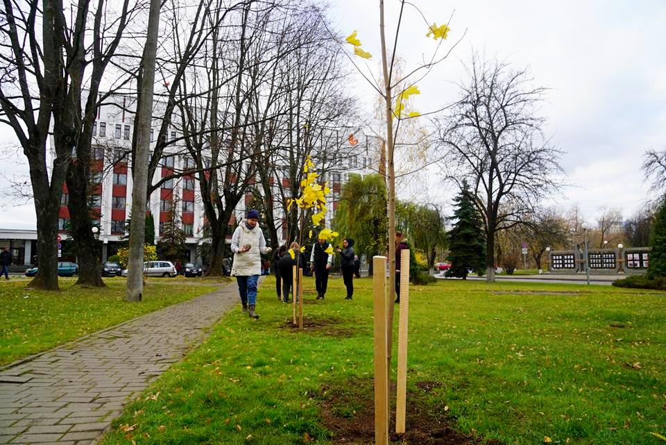 Другой отряд трудового десанта наполнял «зеленые легкие» города – закладывал кленовую аллею.
