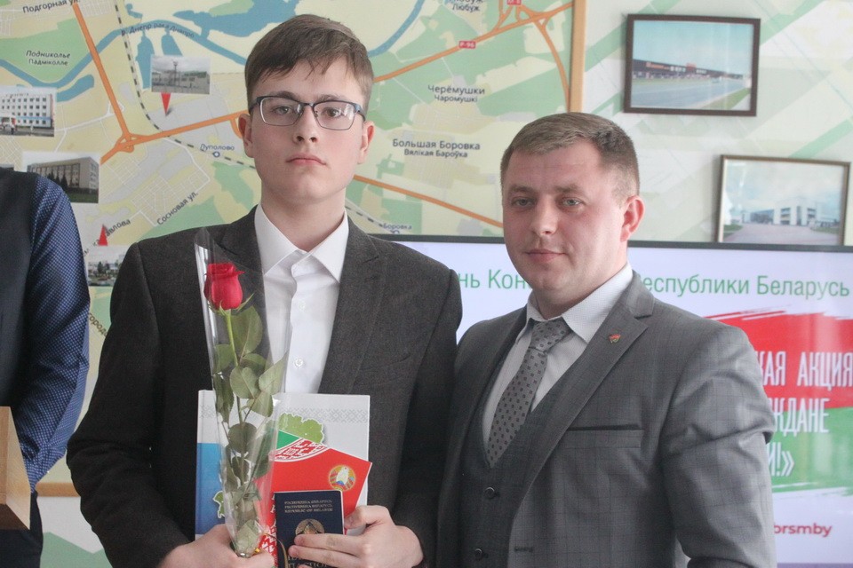 Со знаменательным событием школьников поздравили глава администрации Октябрьского района Петр Соловьев, председатель районного совета ветеранов Петр Мудрогелов и первый секретарь райкома БРСМ Денис Чепелев.