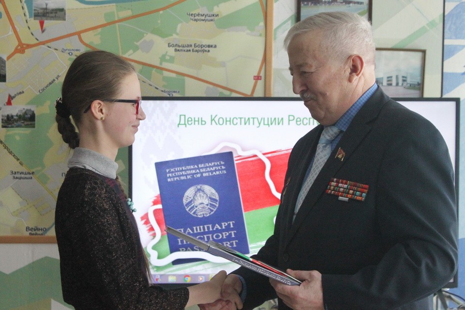 Сегодня, в День Конституции, в средней школе №37 вручили паспорта 15 самым активным ребятам – учащимся школ Октябрьского района.