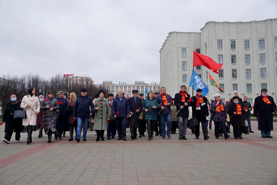 В Могилеве отметили День Октябрьской революции. На площади Ленина состоялся митинг и церемония возложения цветов к подножию памятника вождю мирового пролетариата.