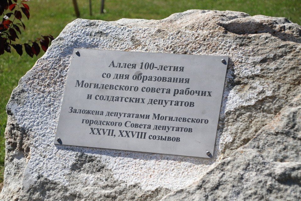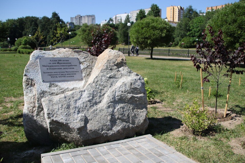В 2017 году на этом месте депутаты 27 созыва заложили аллею, посвященную 100-летию образования Могилевского совета рабочих и солдатских депутатов. А спустя 4 года депутаты уже 28 созыва, поддерживая преемственность между поколениями, открыли памятный камень.