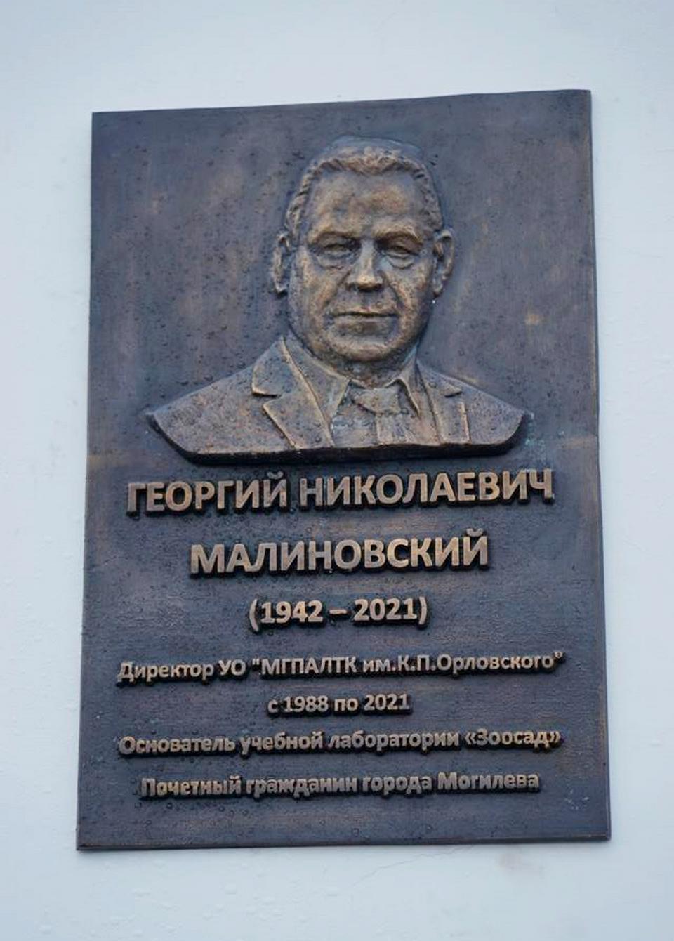 В Могилевском государственном ордена Трудового Красного Знамени профессиональном агролесотехническом колледже имени К.П. Орловского состоялось открытие мемориальной доски Георгию Малиновскому. В торжественной церемонии приняли участие руководство области и Могилева, руководители предприятий и учреждений образования, учащиеся колледжа.