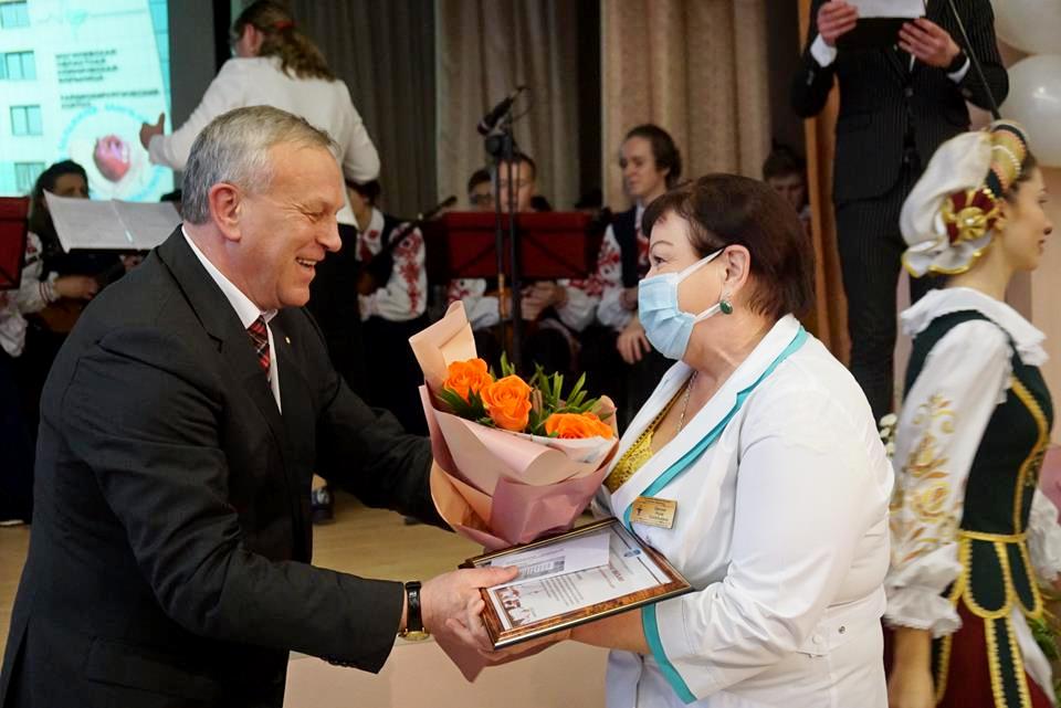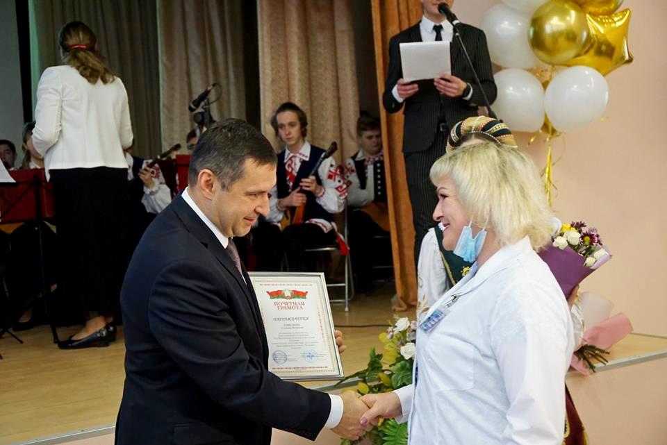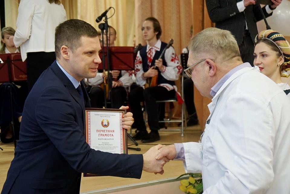 Помимо теплых слов в свой адрес люди в белых халатах получили заслуженные награды. Так, депутат Палаты Представителей Национального собрания Республики Беларусь Владимир Гацко вручил главврачу больницы Анатолию Кулику Благодарственное письмо за подписью спикера нижней палаты парламента Владимира Андрейченко. Работники медучреждения были отмечены почетными грамотами и благодарственными письмами областного и городского Советов депутатов, Могилевского горисполкома, администраций районов города, главного управления по здравоохранению облисполкома. Чествовали юбиляров и коллеги из областных, городских, районных учреждений здравоохранения. Не остались в стороне от поздравлений профильный профсоюз и общественные организации. Примкнули к торжественной церемонии и представители бизнеса. Например, заместитель директора ЧПУП «ТелекомГруппИнвест» Андрей Ерощенко вручил Анатолию Кулику подарочный сертификат на 100 тысяч рублей.