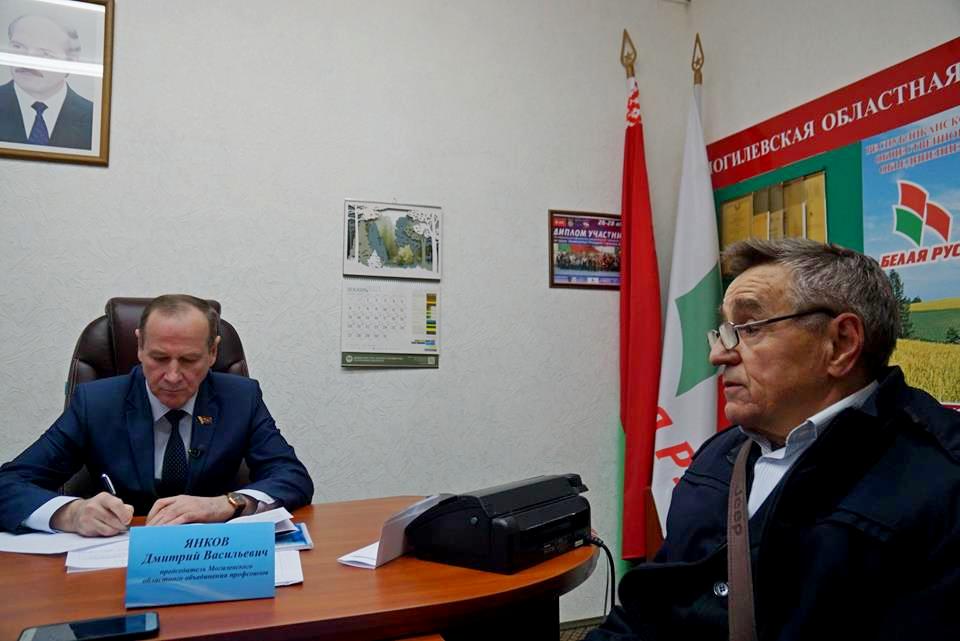 В общественной приемной областной структуры РОО «Белая Русь» прием граждан по вопросам изменений и дополнений в Конституцию Республики Беларусь провел председатель Могилевского областного объединения профсоюзов Дмитрий Янков.