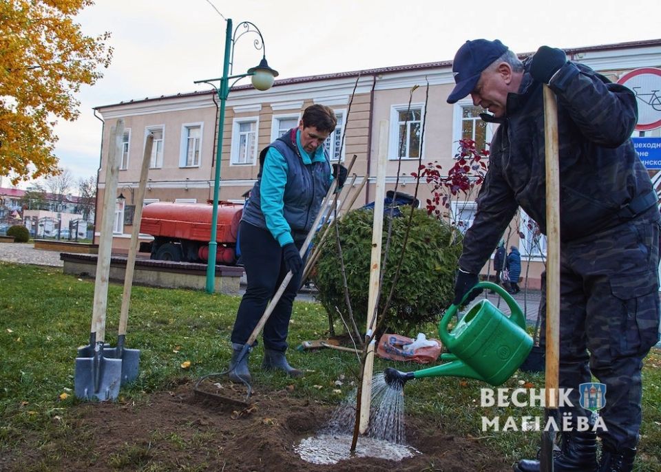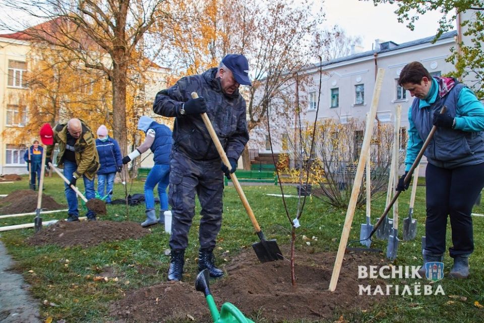 Посадка фруктовых деревьев с участием председателя Могилевского горисполкома Владимира Цумарева и председателя горсовета депутатов Максима Гурина прошла в сквере на Ленинской напротив торгового центра «Алиса». На улице Большая Чаусская вблизи ФОКа свыше 200 деревьев и 450 кустов высаживали работники облисполкома и его структурных подразделений под руководством губернатора Леонида Зайца. Подключился к общему делу депутатский корпус облсовета депутатов под руководством Ирины Раинчик.