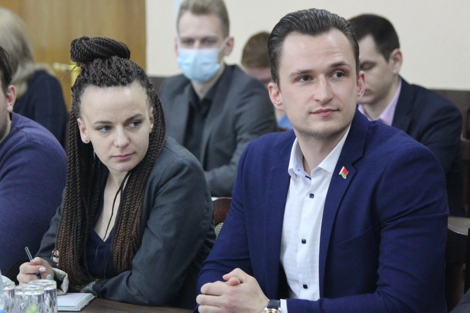 Он не только побывал в учебных классах и лабораториях, но и встретился с молодежью области за круглым столом. Участники диалоговой площадки делились своими наработками, получали советы от Виктора Лисковича, заместителя председателя Могилевского областного Совета депутатов Ирины Раинчик, первого проректора БГУТ Александра Носикова.
