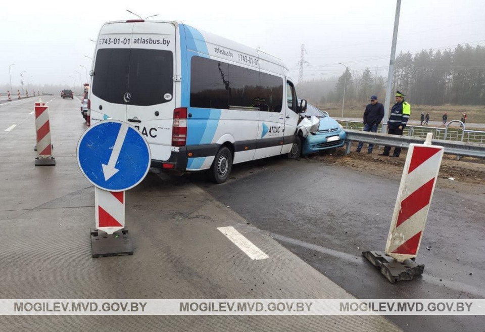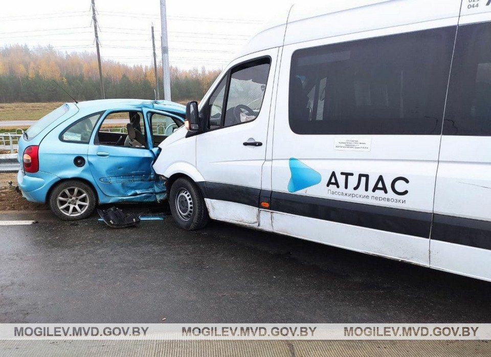 УВД облисполкома, автомобиль Citroen Xsara Picasso, двигаясь со стороны областного центра и совершая левый поворот на газонаполнительную станцию РУП «Могилевоблгаз», столкнулся с маршруткой Mercedes-Benz Sprinter, которая ехала со стороны Чаус в направлении Могилева.