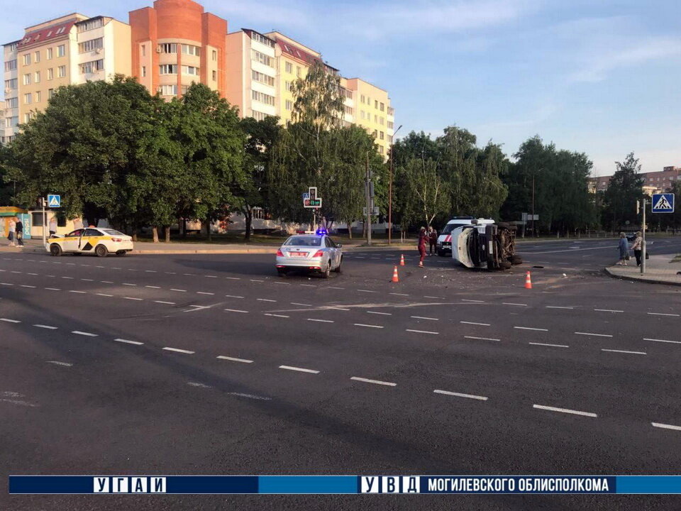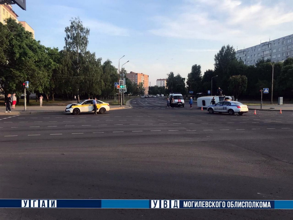 На перекрестке в Могилеве столкнулись автомобиль такси и микроавтобус