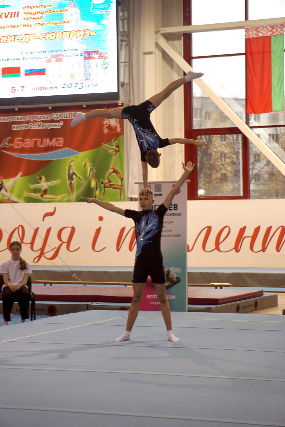 — Турнир «Киндер-сюрприз» — это важное событие в спортивной жизни Могилева. Убежден, что он пройдет на высоком уровне и наши юные спортсмены покажут достойные результаты. Приятно, что в соревнованиях принимает участие команда из Российской федерации. Уверен, что турнир будет способствовать повышению спортивного авторитета нашего города, пропаганде здорового образа жизни и, конечно же, появлению новых имен и результатов в спортивной акробатике, — отметил во время церемонии открытия турнира председатель Могилевского городского Совета депутатов Максим Гурин.