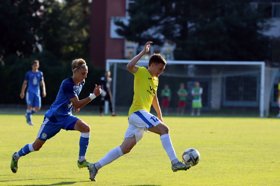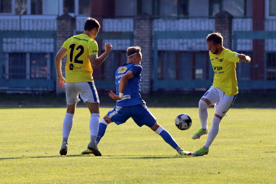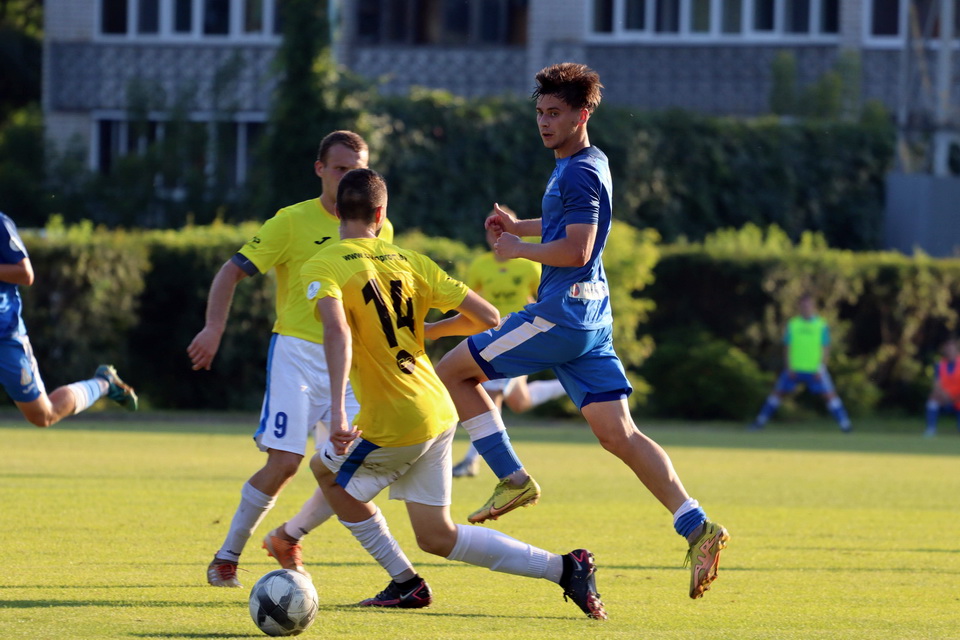 Хозяева поля открыли счет спустя три минуты после начала матча. Даниил Виговский подловил на ошибке голкипера гостей Андрея Саковича и отправил мяч в сетку – 1:0. После этого в игре наступило небольшое затишье, которое на 23-й минуте нарушил Юрий Клочков. Наш лучший бомбардир подхватил мяч на своей половине поля, набрал скорость, по ходу ушел от трех соперников, вышел один на один с голкипером и аккуратно отправил мяч мимо него – 2:0.