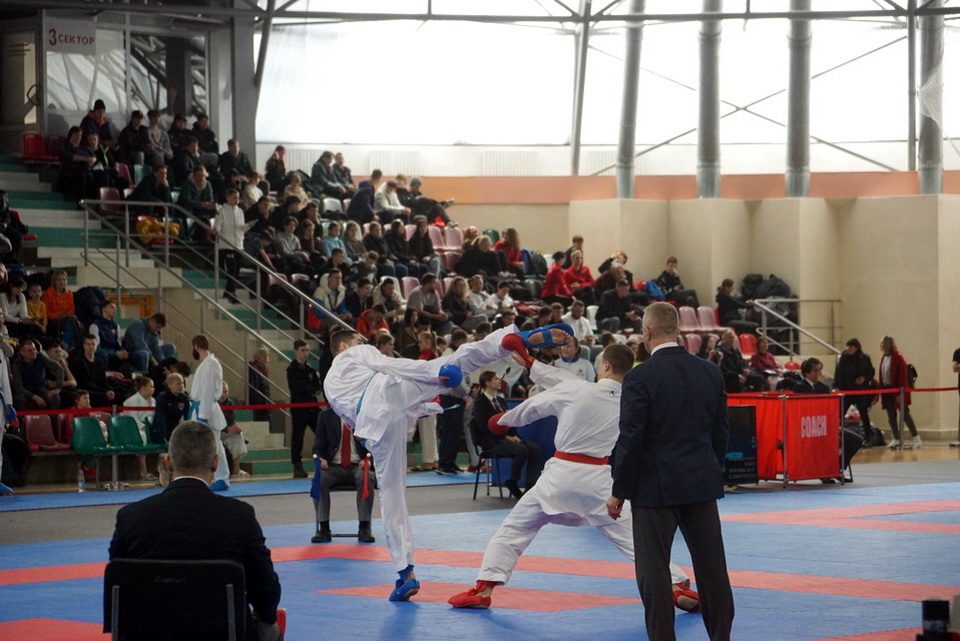 На татами СК «Олимпиец» в рамках первенства отношения выясняли кадеты, юниоры, молодежь. В рамках чемпионата – взрослые. Каратисты демонстрировали свое мастерство в категориях ката и кумитэ.