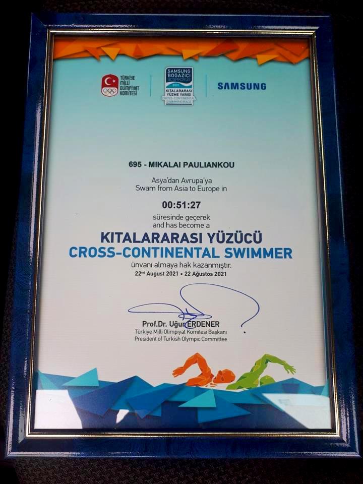 Николай Павленков был удостоен звания «Межконтинентальный пловец», а также медалью «За преодоление Босфора». Его имя занесено на Стену славы в Стамбуле.