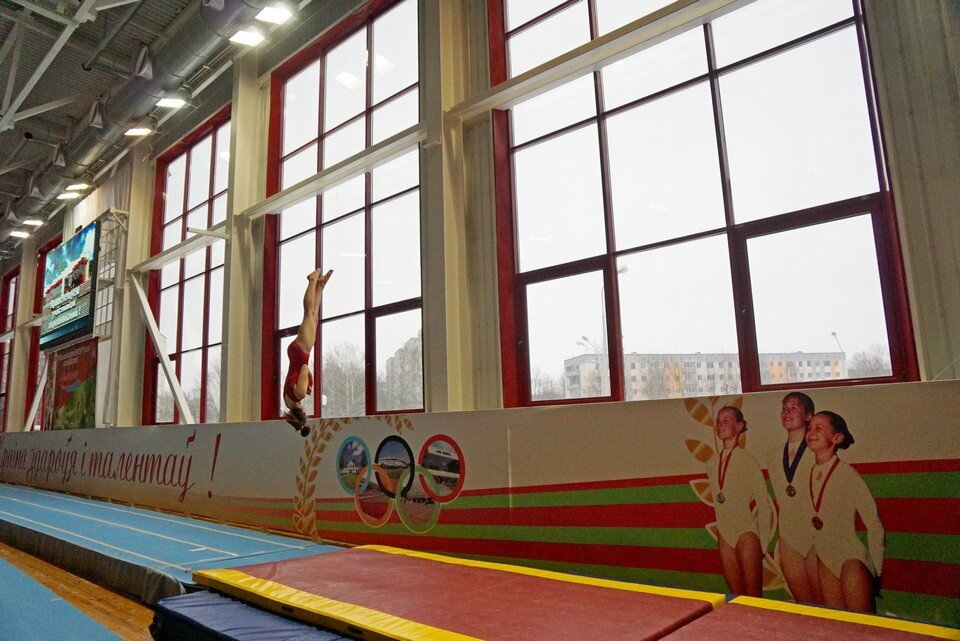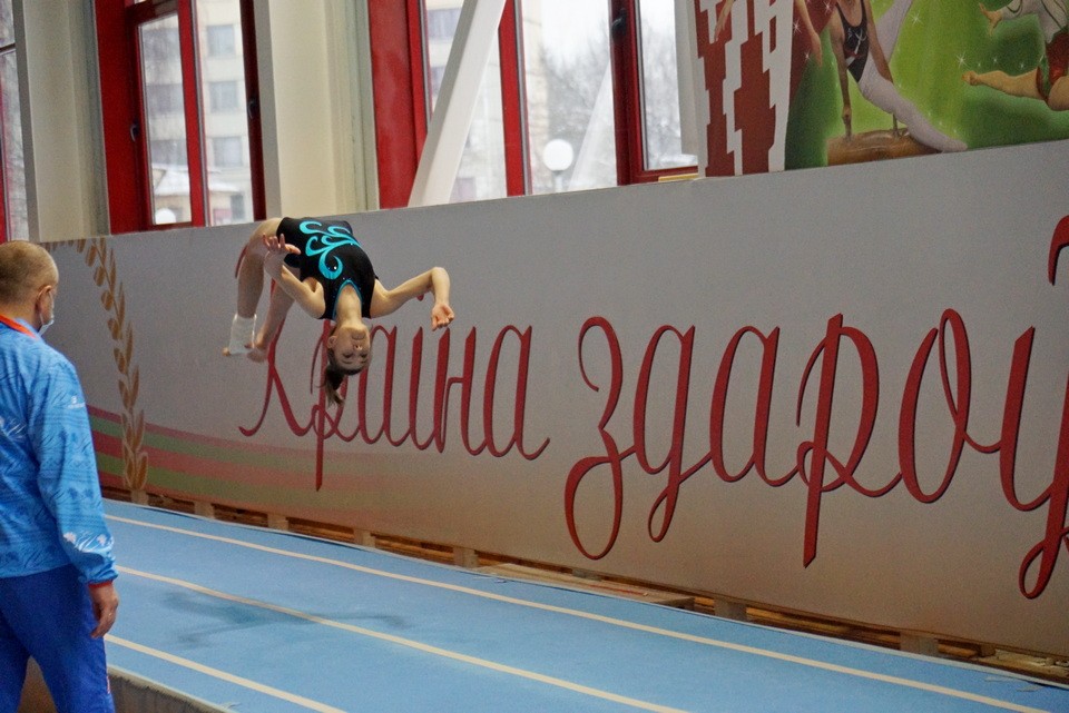 Во Дворце гимнастики в Могилеве проходит первенство Беларуси по прыжкам на батуте (дисциплина — прыжки на акробатической дорожке). В нем принимают участие спортсмены 2003-2007 годов рождения из Могилева, Минска, Барановичей, Гомеля и Витебска.