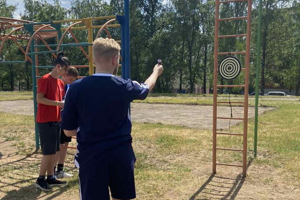Ребята соревновались на 6 специализированных игровых станциях: дартс, «силач» (парни — гиря, девочки — отжимания), «прыг-скок» (прыжки в длину), «рекордсмен» (парни — набивание футбольного мяча, девушки — волейбольного), «кто дальше» (метание гранаты), перетягивание каната.