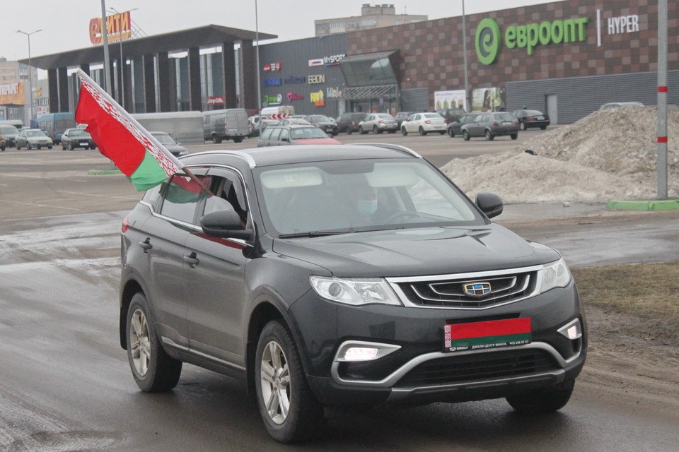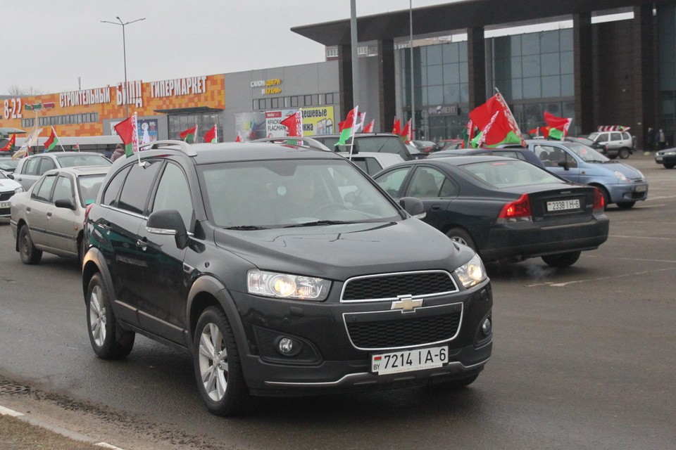 В знаковый для белорусской милиции день на стоянке у торгового центра «Е-сити» множество автомобилей с флагами, символикой общественных объединений. Так представители трудовых коллективов, молодежь, жители Могилева решили поздравить тех, кто каждый день на боевом посту.