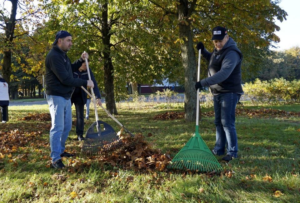 Вооружившись уборочным инвентарем, химики быстро привели парковую территорию около предприятия в порядок, очистив её от опавшей листвы и веток.