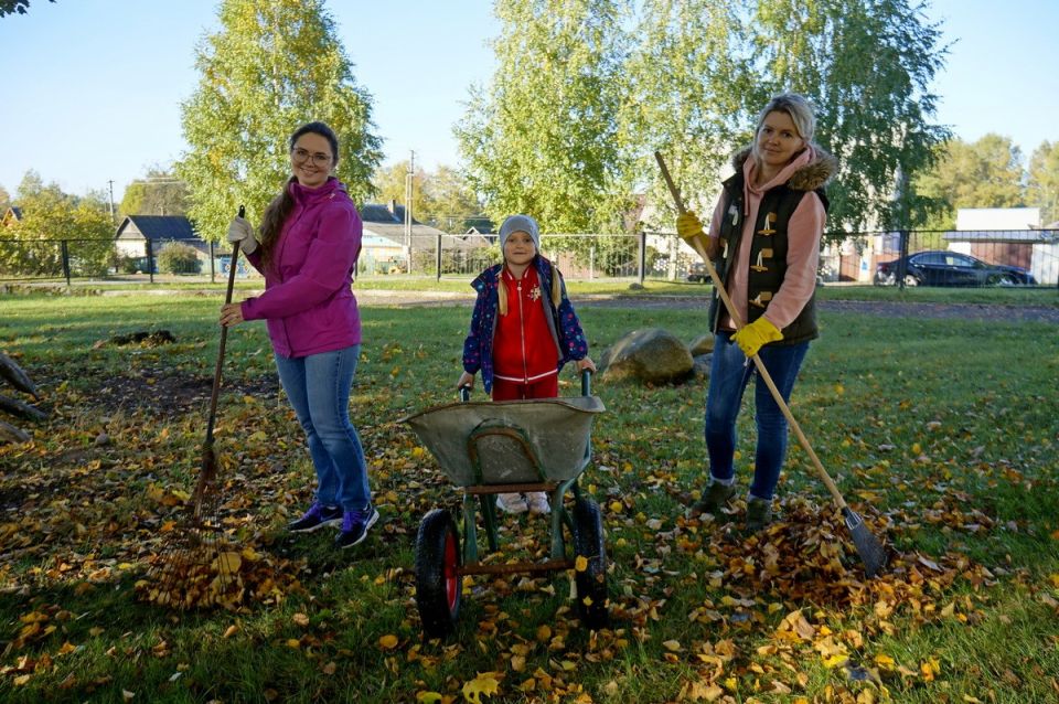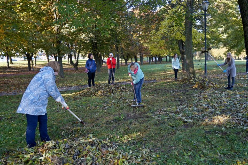 Трудовой десант ОАО «Лента» занимался над уборкой листвы и мусора на прилегающей и закрепленой территории.