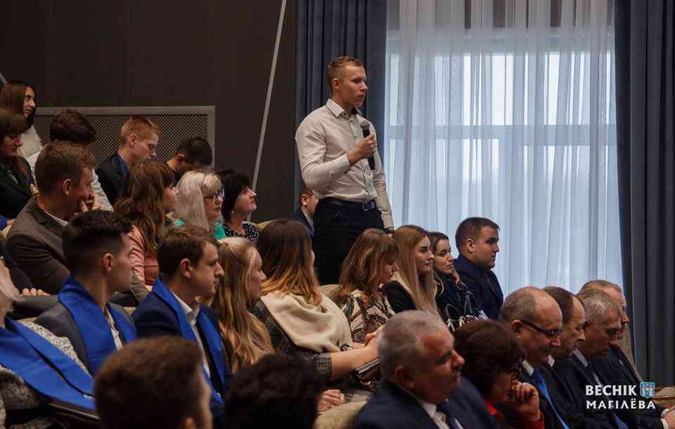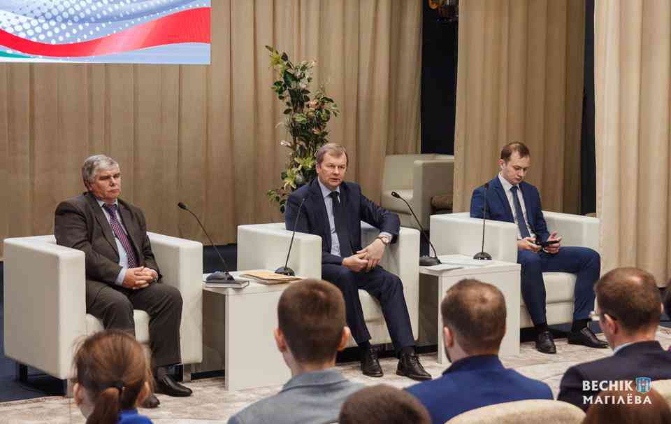 Одним из мероприятий в рамках форума стала встреча в формате открытого диалога, которая прошла во Дворце культуры области. Немного ранее участники успели посетить ведущие предприятия региона и социальные объекты. С теми, кто в этом году получил первое рабочее место на Могилевщине, встретился председатель Могилевского облисполкома Владимир Доманевский: