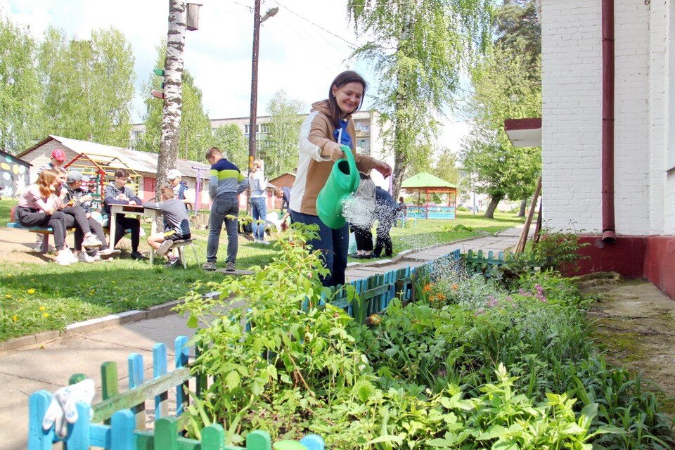 Этот двор для «воскресника» выбрали не случайно. Несмотря на то, что он расположен на окраине города и среди малоэтажных домов, жизнь там бьет ключом: с утра до ночи не смолкает детский смех, малыши перекапывают песочницу, детишки постарше катаются с горки, а подростки устраивают турниры по шашкам! И все это во многом благодаря активным жителям дома – Наталье и Александру Куцеполенко и их детям – 13-летней Насте и Артему, которому пока всего 4 года, но энергии, больше, чем у родителей. Переехав 7 лет назад в этот дом, они активно взялись за благоустройство двора: разбили клумбы, привели в порядок имеющуюся детскую площадку, в 2018 году двор победил в проекте «Сочный дворик», благодаря чему обзавелся современным игровым комплексом с горкой и шведской стенкой. Это стало очередным толчком для развития: из старого стола сделали шахматный столик, из спиленной березы – пьедестал почета и скамейку, из отслуживших покрышек – красную «мазерати». Своей энергией они заразили жильцов своего дома и близлежащих, работников ЖЭУ, поддерживающих их во всех общественно полезных начинаниях.