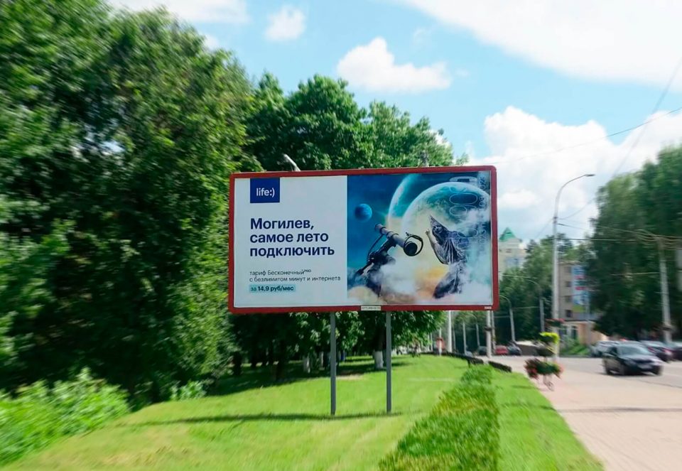 Памятник Звездочету в исполнении искусственного интеллекта появился на билбордах и ситилайтах Могилева. Изображение, сгенерированное нейросетью, мобильный оператор life:) подготовил для продвижения тарифа Бесконечный Pro.